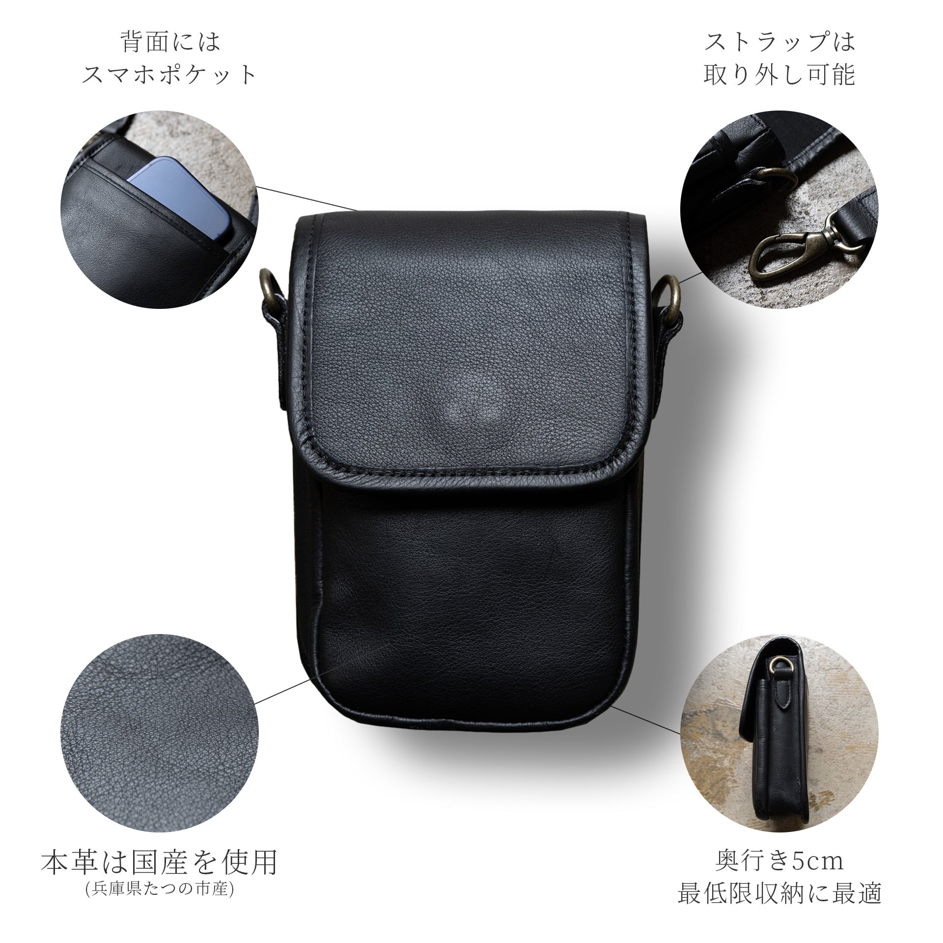 ・小ぶりかつスマートなフォルムで、スマホ・財布・鍵など最低限収納に最適